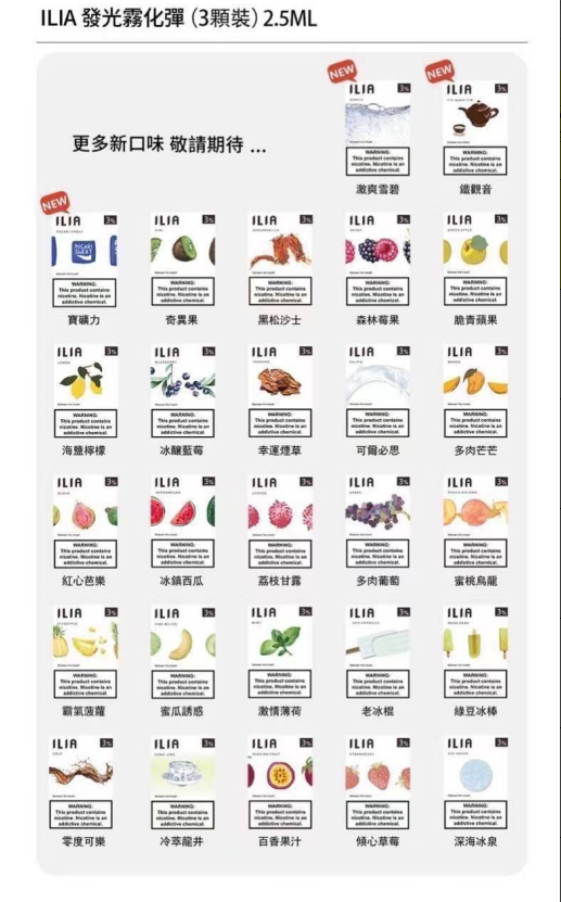 ILIA電子菸煙彈提供27種豐富口味選擇,讓每一位電子煙愛好者都能找到心儀的煙彈口感。